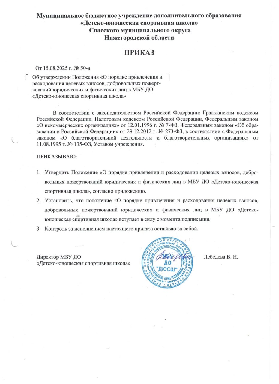 Положение о порядке привлечения и расходования целевых взносов,добровольных пожертвований юридических и физических лиц в МБУ ДО "Детско - юношеская спортивная школа"